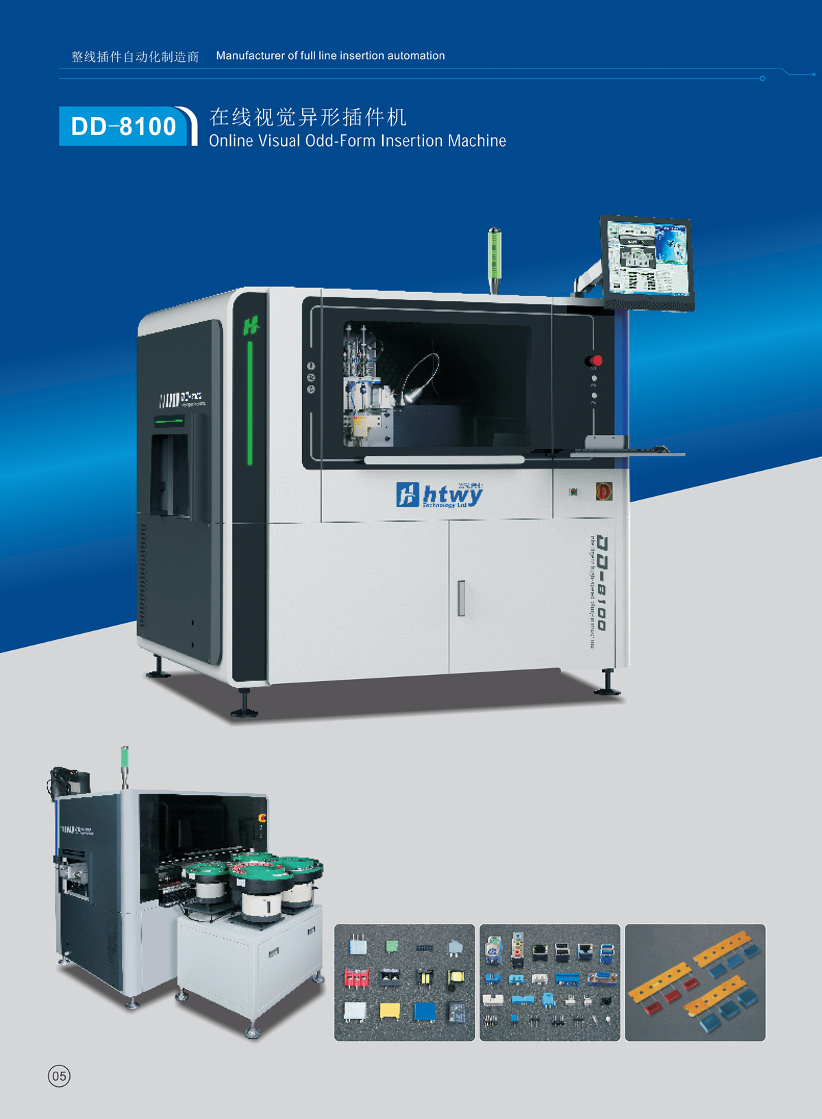 龙门多功能插件机根据不同产品按设定的程序将各种规格的异形电子元件自动插入在印刷电路板(PCB) 上, 具有弯角固定以及检测功能,达到高速度、高精度、高稳定的插装效果。